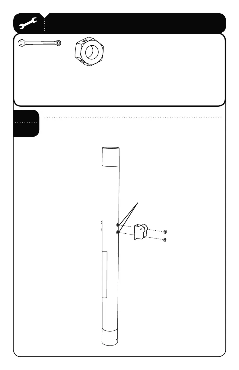 Place the Pole Bracket (ALL) onto the 3/8” x 4” Hex Bolts (ABE), and attach