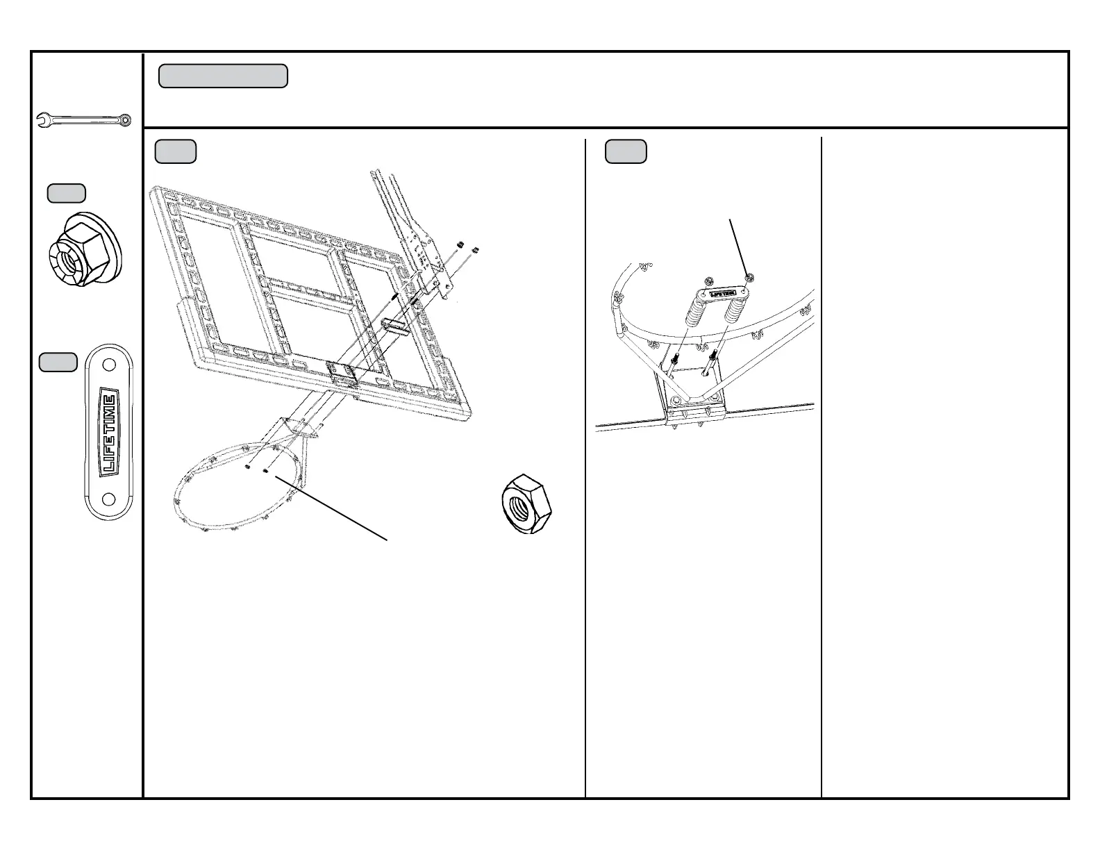 ASSEMBLE THE U-BOLT (PROVIDED WITH THE BACKBOARD BRACKETS) TO THE BACKBOARD BRACKETS ACCORDING TO THE INSTRUCTIONS PROVIDED