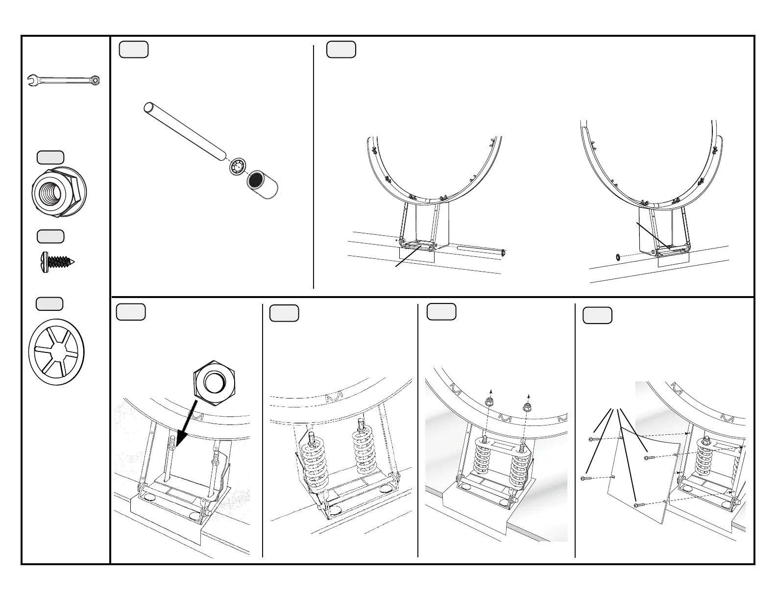 Slide the end of the Axle (RJ) through the Rim (AA) and the Rim Pivot Bracket (AH). Press the