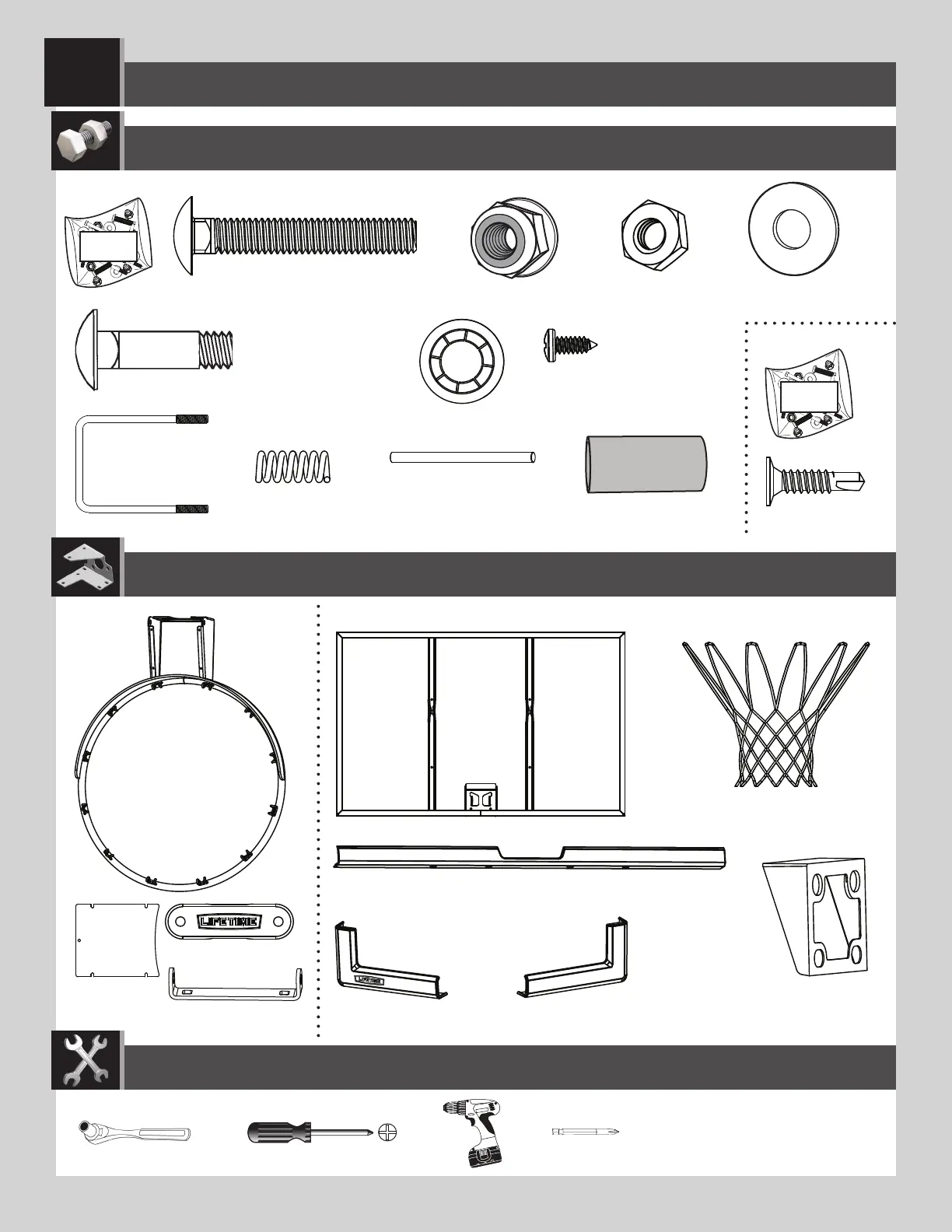 Lifetime 79910 - Backboard-to-Rim Assembly; Hardware for Backboard-to-Rim Assembly; Parts for Backboard-to-Rim Assembly; Tools for Backboard-to-Rim Assembly