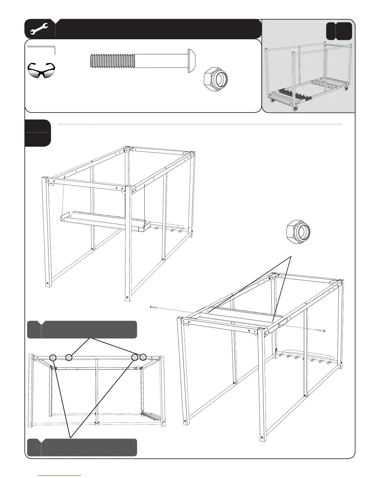 Table Support to the Frame using the required hardware. Do not completely tighten Nuts until instructed.