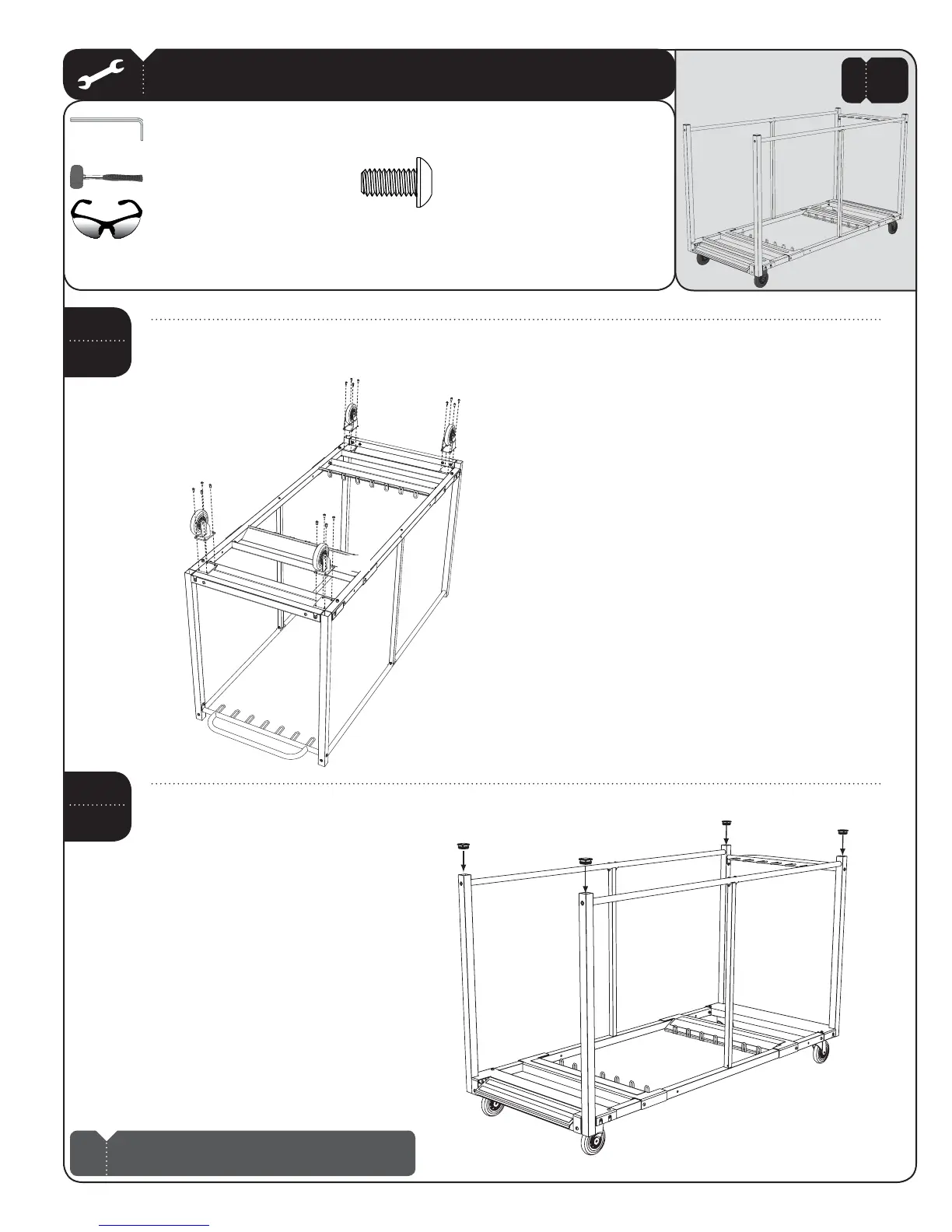 Turn the Table Cart right side up, and insert the four (4) End Caps (DBB)JOUPUIFGPVS'SPOUBOE3FBS7FSUJDBM4VQQPSUT