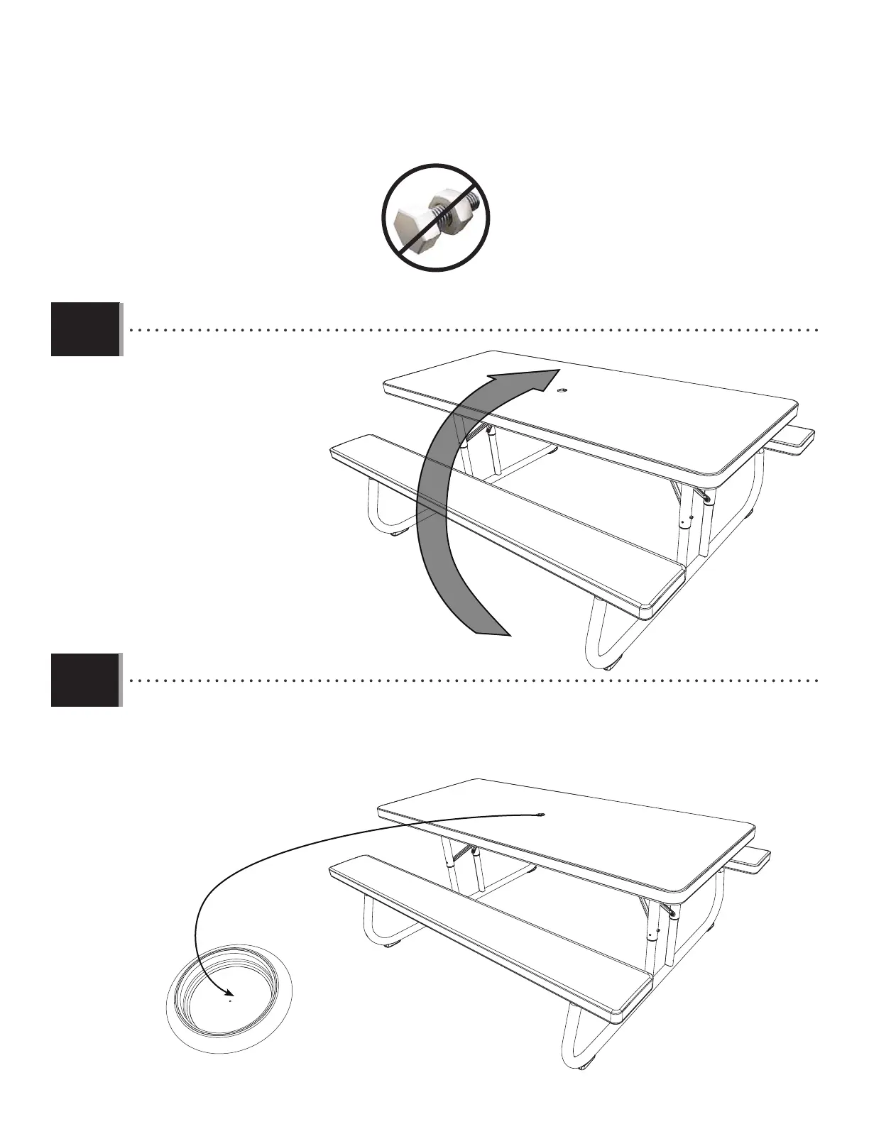 • If using an umbrella/parasol, remove the Plug (BBZ) from hole in center of Table Top. Then, insert the umbrella/