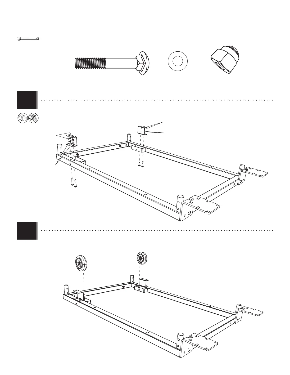 Secure the Wheel Brackets (EBJ) to the Side Frames. Do not overtighten.