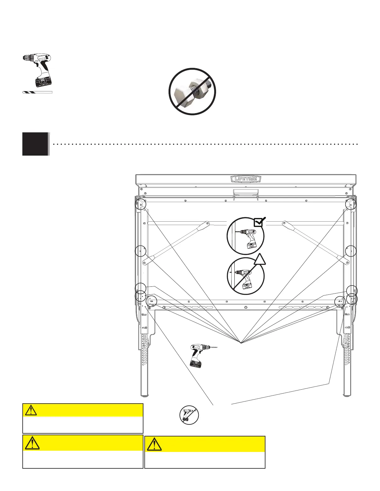 • Pre-drill these ten holes indicated without drilling completely through the Tabletop.