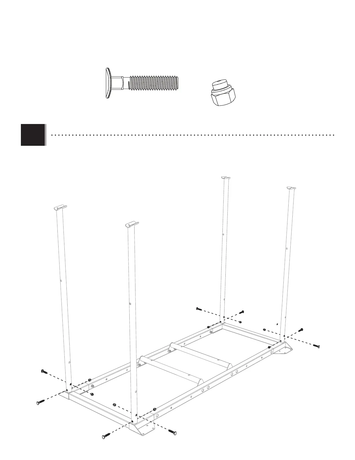 • Secure the Outer Support Tubes to the End Weldments using two Bolts (EVU) and Cap Nuts (EVV) at each corner.