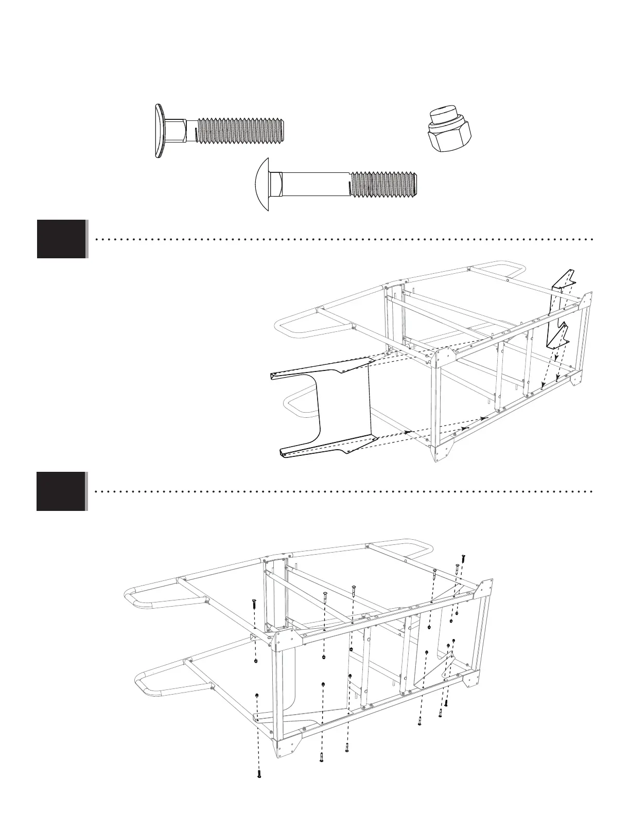 • Secure the two Inclined Panels to the assembly at the locations indicated. Tighten only by hand at this time.