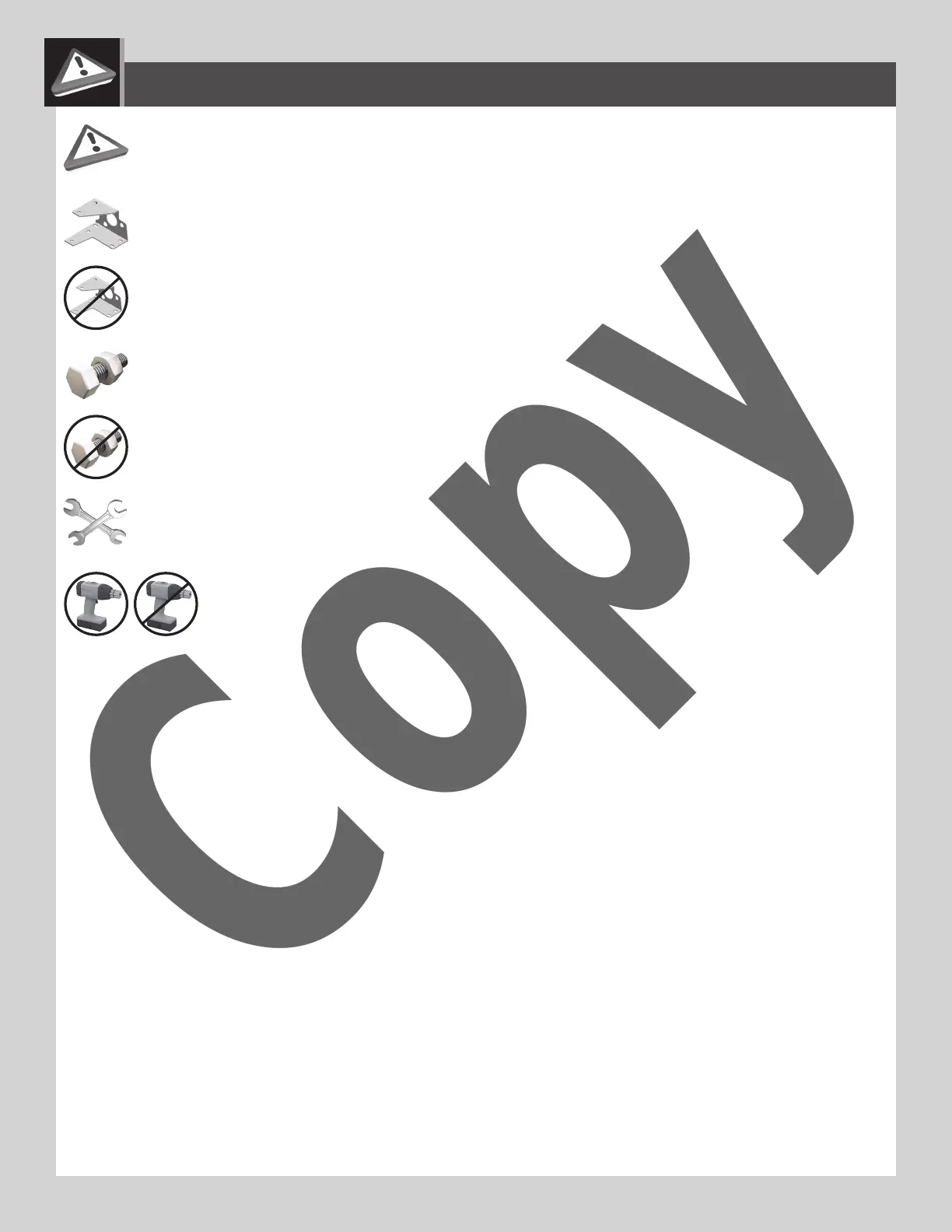 • Indicates to use/not to use an electric drill for a specifi c step.