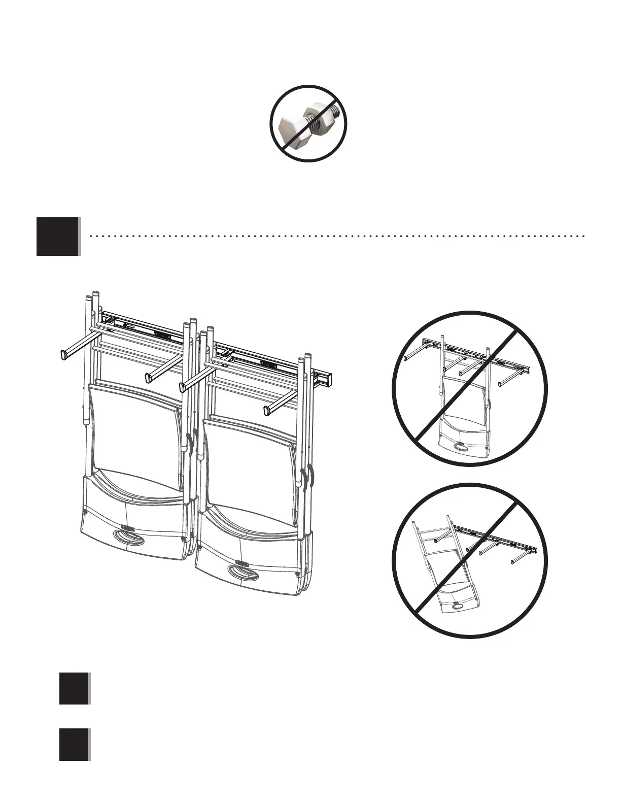 • Colgar las sillas como se muestra. No colgar ninguna otra cosa en el soporte.