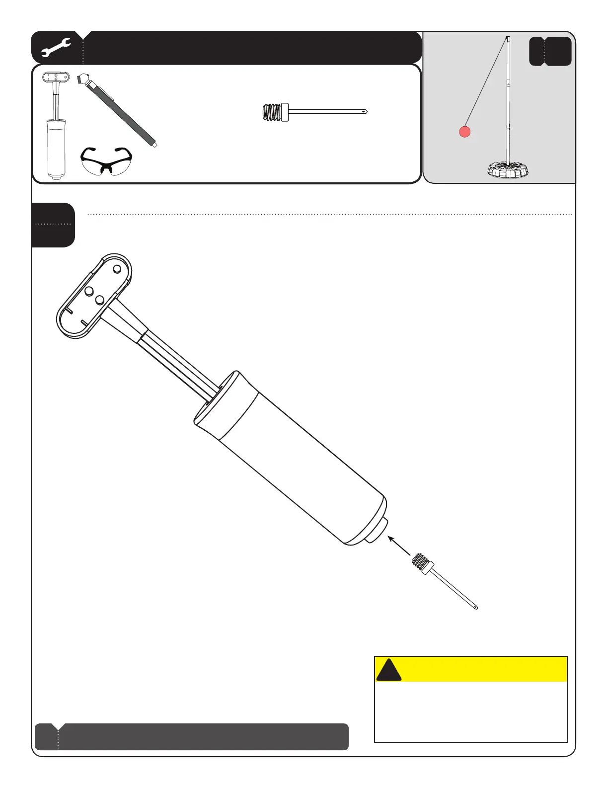 Connect Ball Needle (BFA) to a ball pump. Moisten Needle and carefully insert it into the Tetherball. Inflate Tetherball to 2 lb.