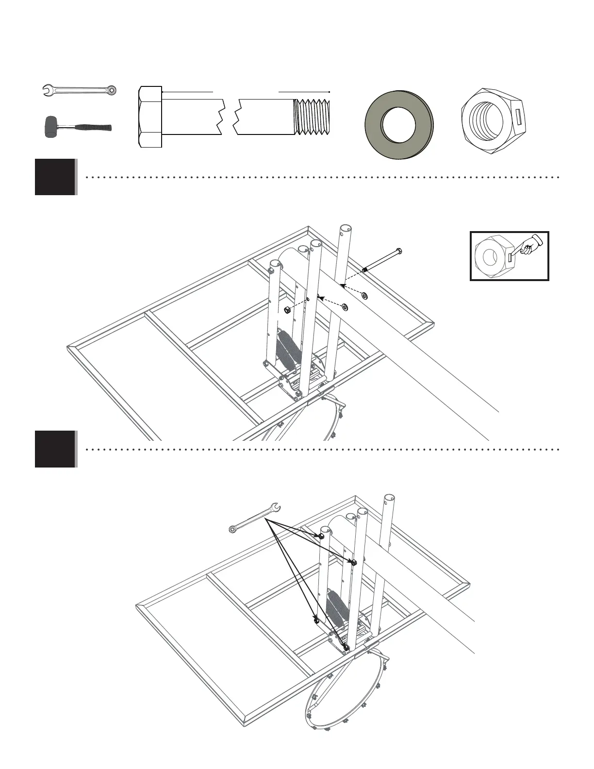 • Tighten nuts until they are fl ush with the end of the bolts.