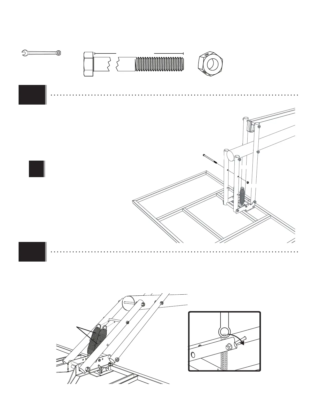 • Raise the backboard to the highest position. Using the closed end of a wrench, stretch the springs (AJY) up and over