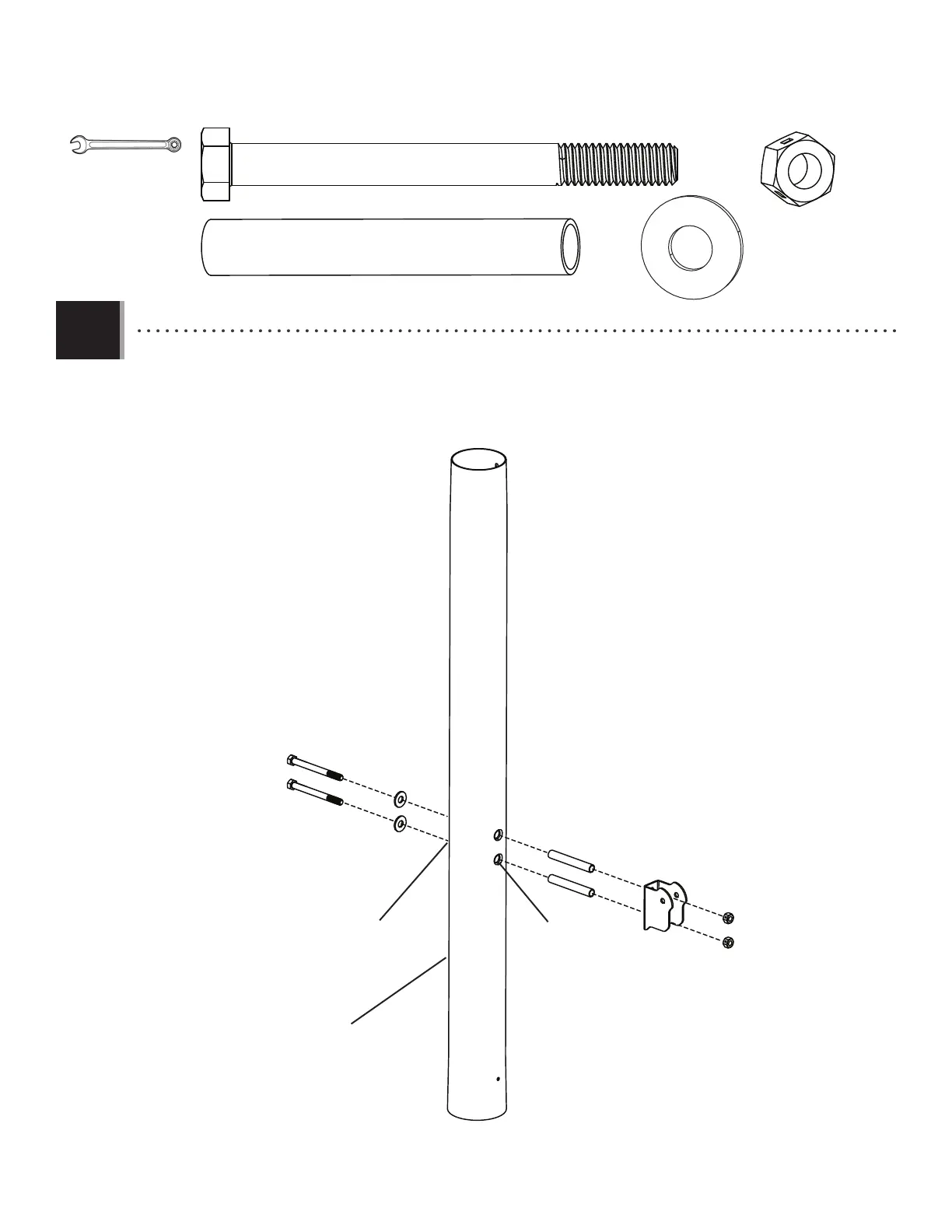 • Secure the pole bracket (ALL) to the middle pole (ALF) with the hardware as shown.