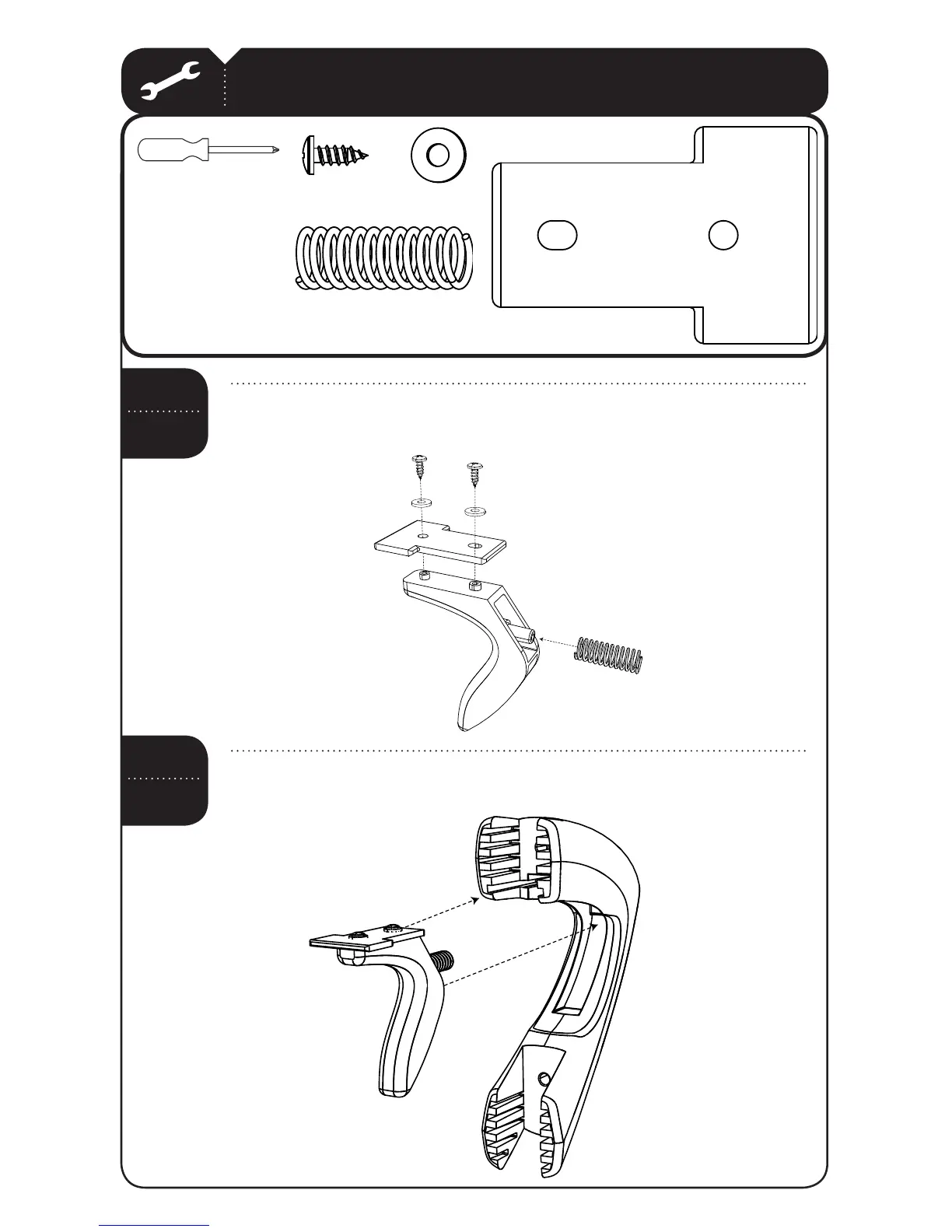 Attach the Lock Tab (APS) to the Trigger (AMN) with the hardware shown,