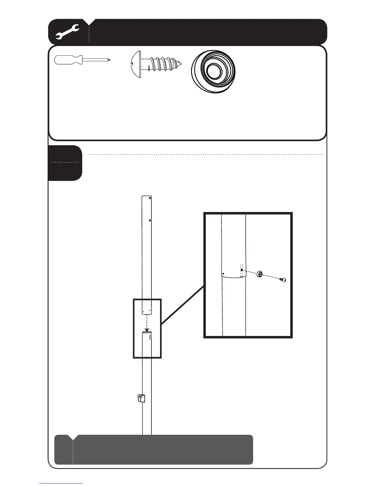 Note: The 1/4” x 3/4” Screw should be fl ush with the Pole, but