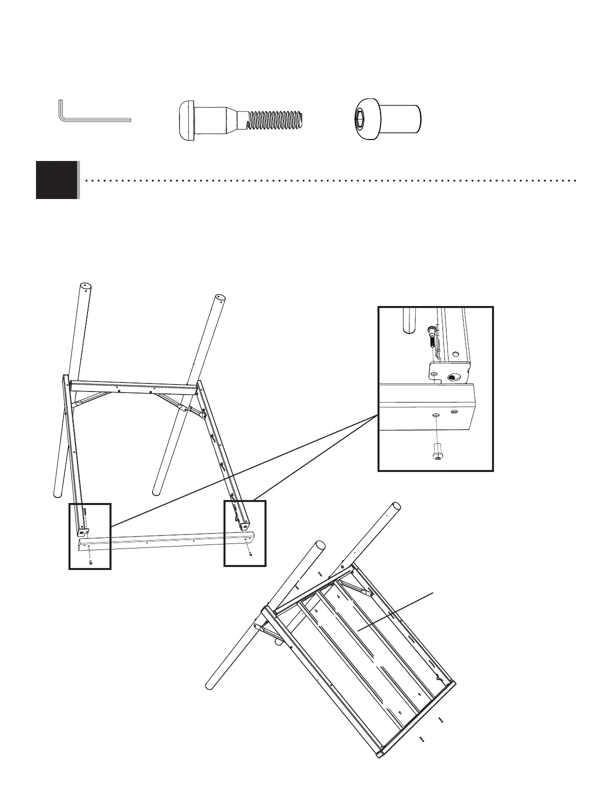the Inside Deck Support (CBL) in the position indicated and secure with the hardware shown.