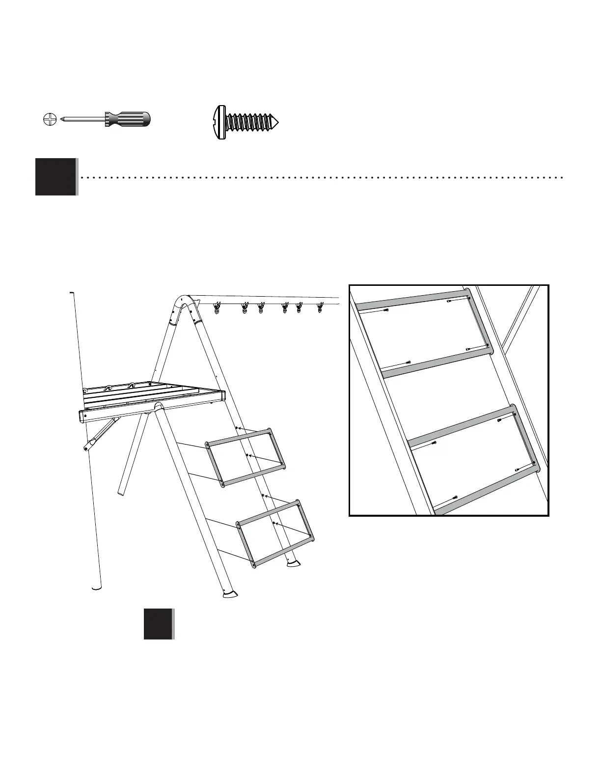 Attach the Ladder Rungs (CBQ) to the Angled Ladder Leg (CAZ) and the Ladder-side Pole (CBF) using the hardware