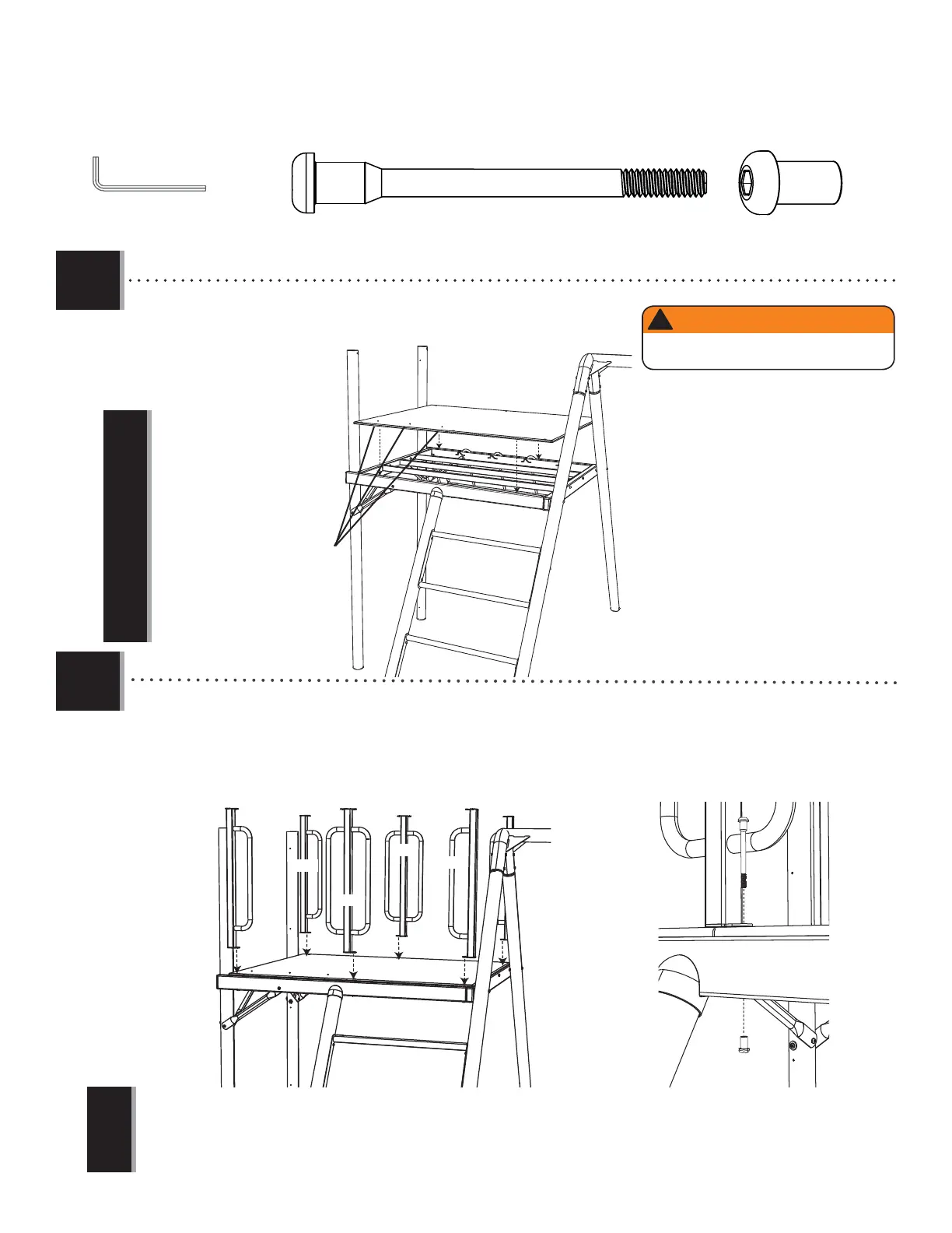 • To make sure the Deck is aligned, hand-tighten the Bolts until all harware has been installed, then completely tighten all the bolts.