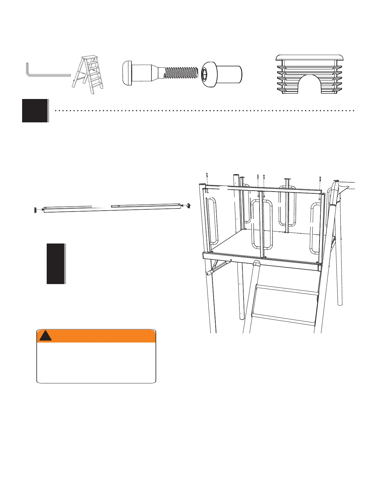 • Place the Square Plugs (EIG) into the ends of both Deck Tubes (CBU). Attach the Deck Tubes to the Hand Rails using