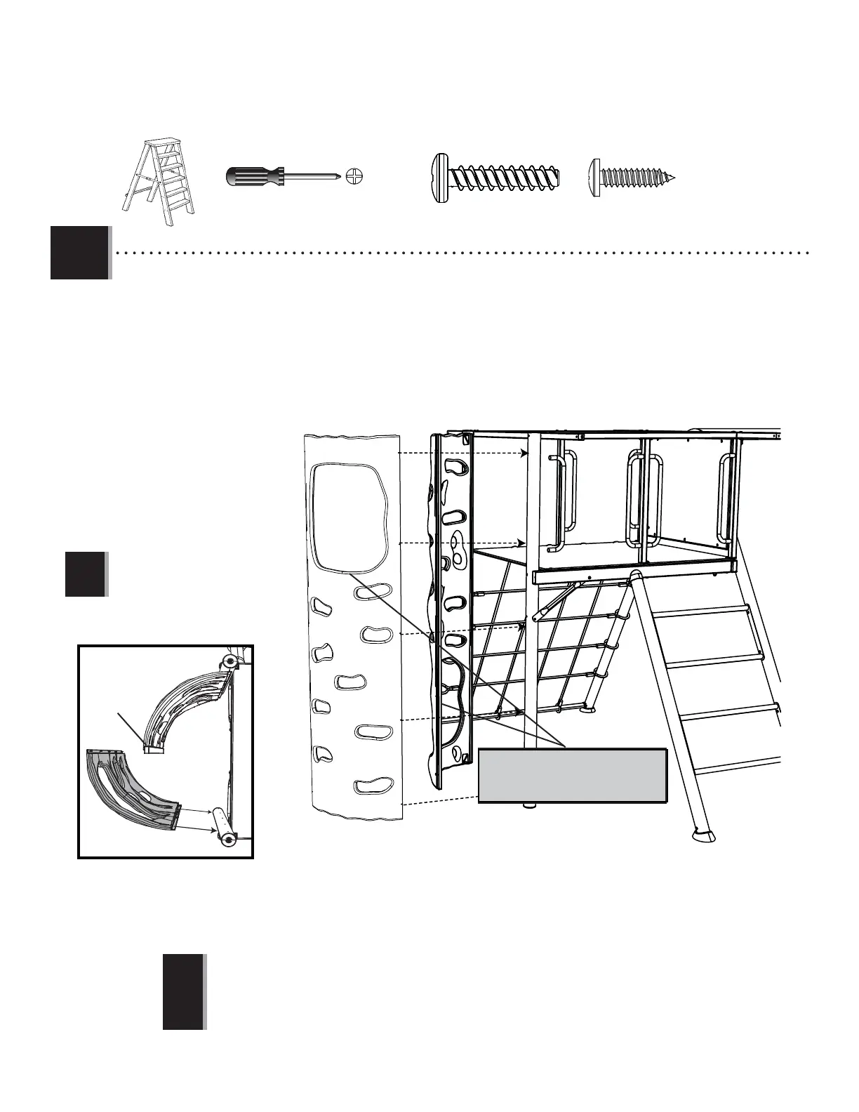 • Both Climbing Wall Panels are the same. Mount the panels so that the large openings are opposite.
