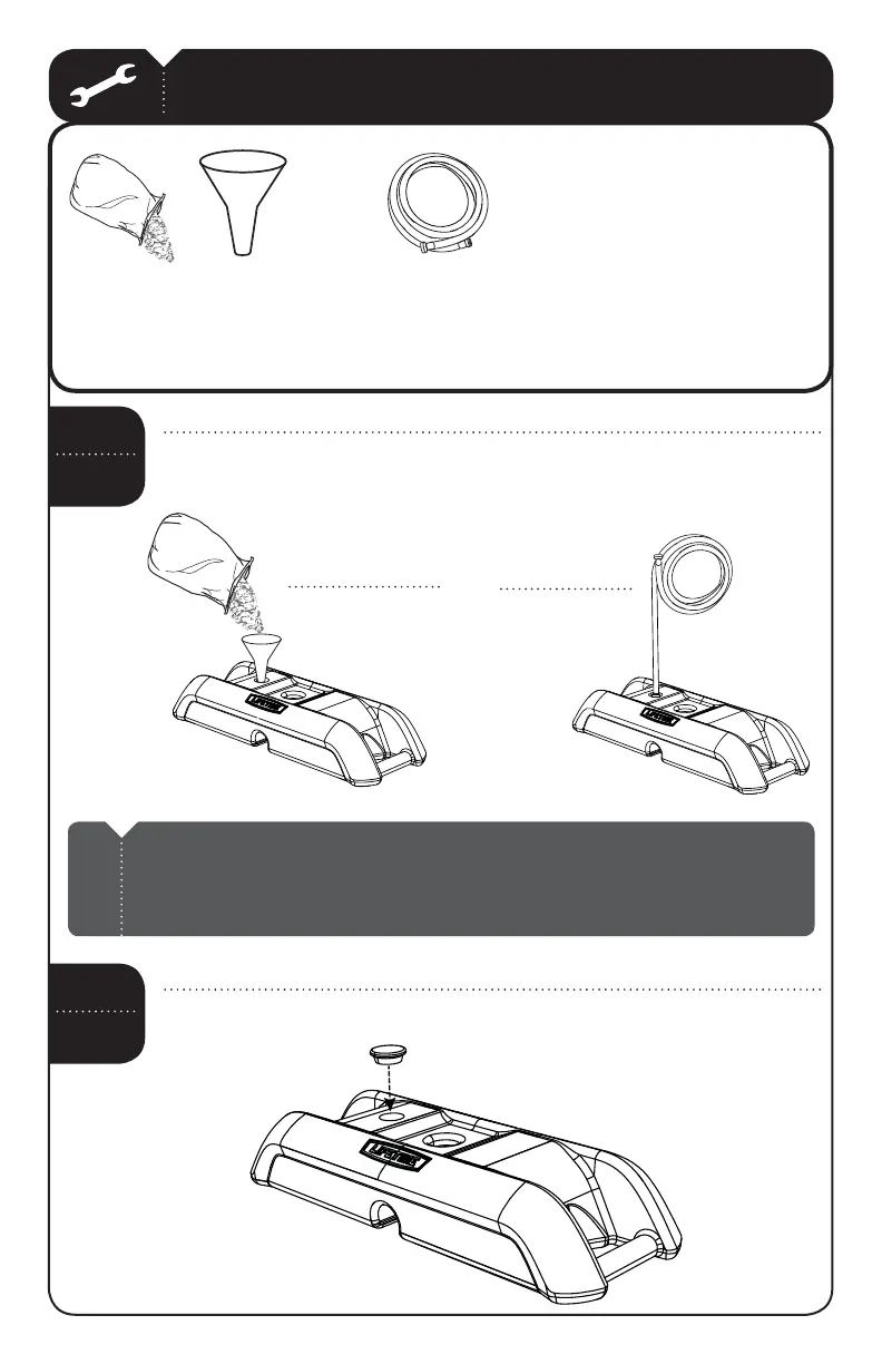 Note: Filling the bases with sand is recommended. Sand will provide increased performance of the
