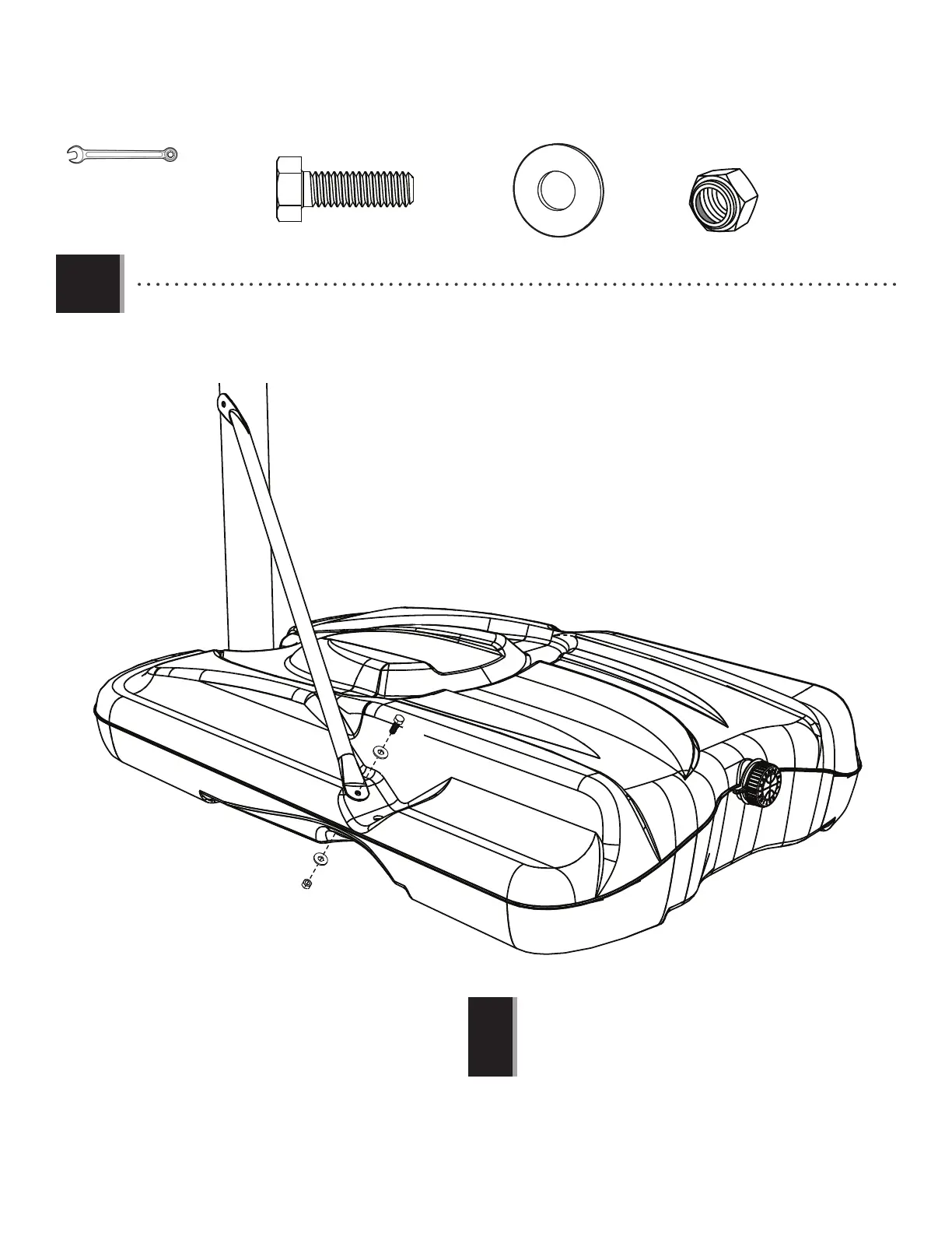 • Attach the fl attened end of the pole brace (ALI) to the base with the hardware shown. Only fi nger tighten the hardware.