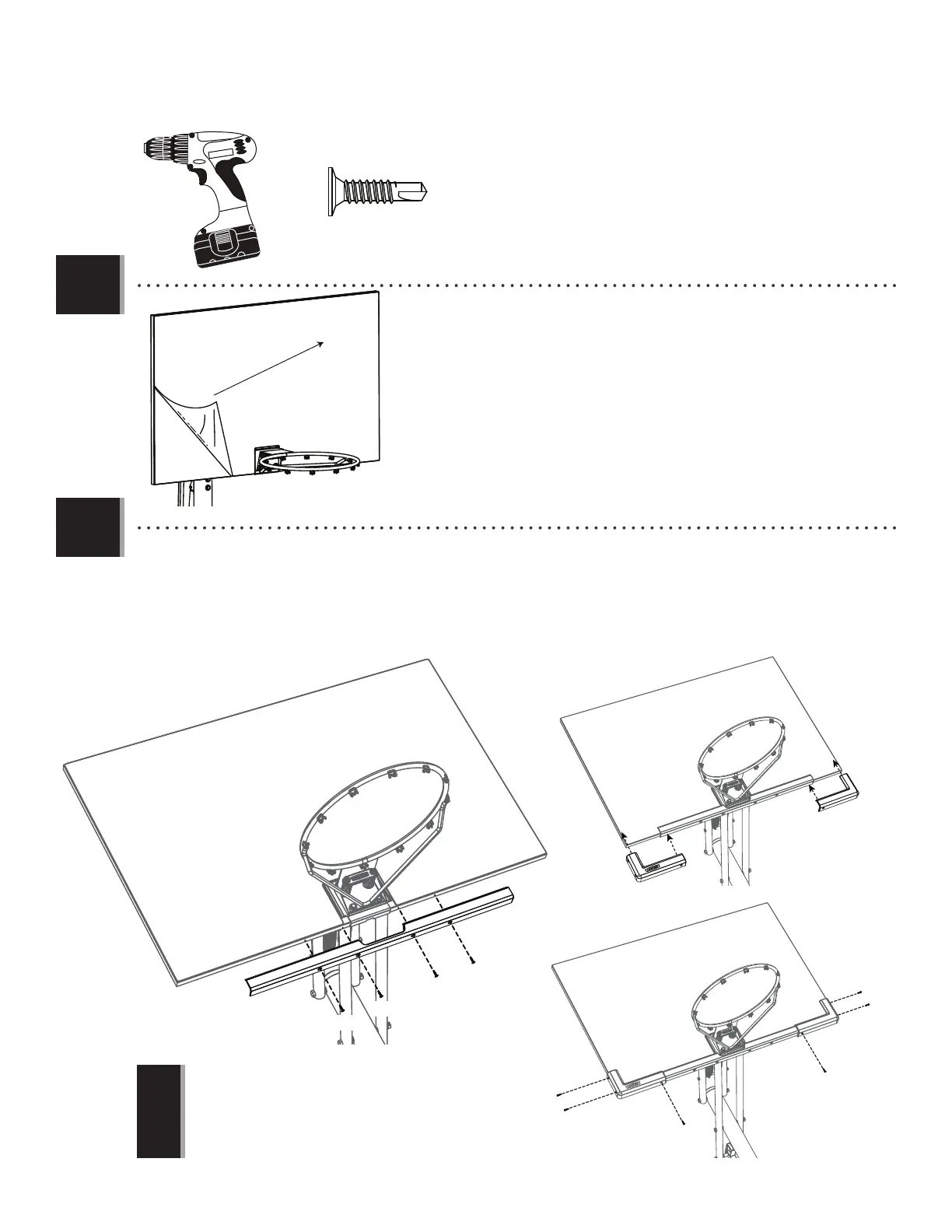 hardware indicated. Make sure that the center frame pad is centered on the metal piece of the backboard as shown.
