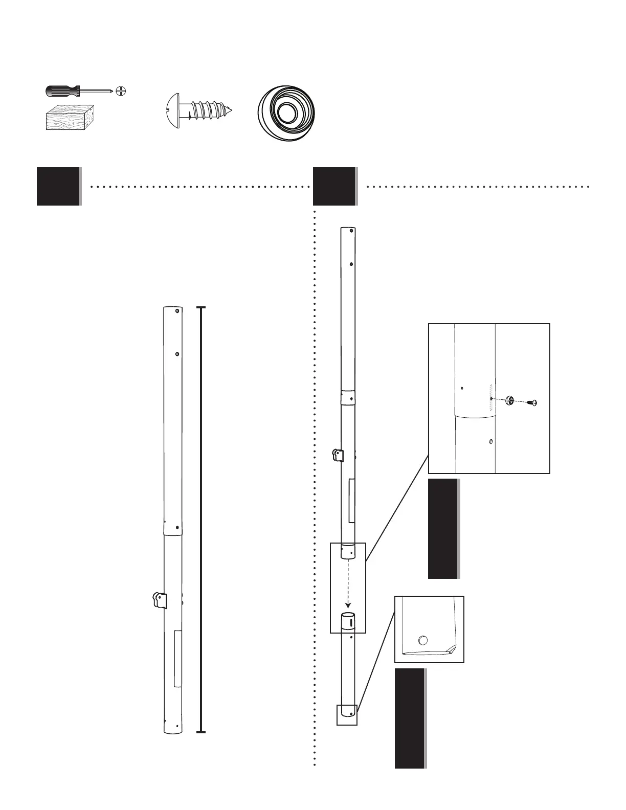 • Attachez bien le poteau du milieu au poteau inférieur