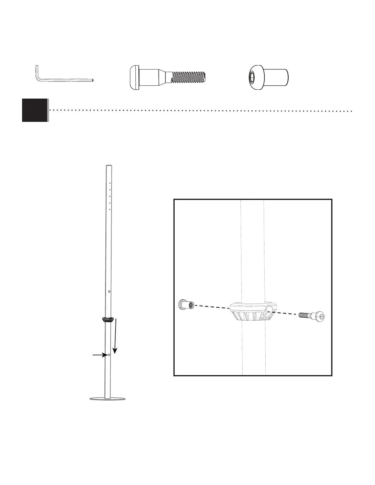• Slide the seat stop (FIV) onto the pole and ground plate assembly (FIS) until it reaches the bottom-most hole in the pole.