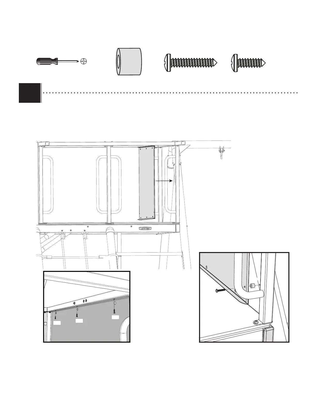 with the hardware indicated. Secure the bottom of the chalkboard with two screws (ASF).