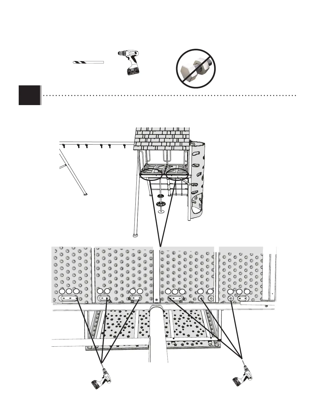 Drill holes from underneath the deck.