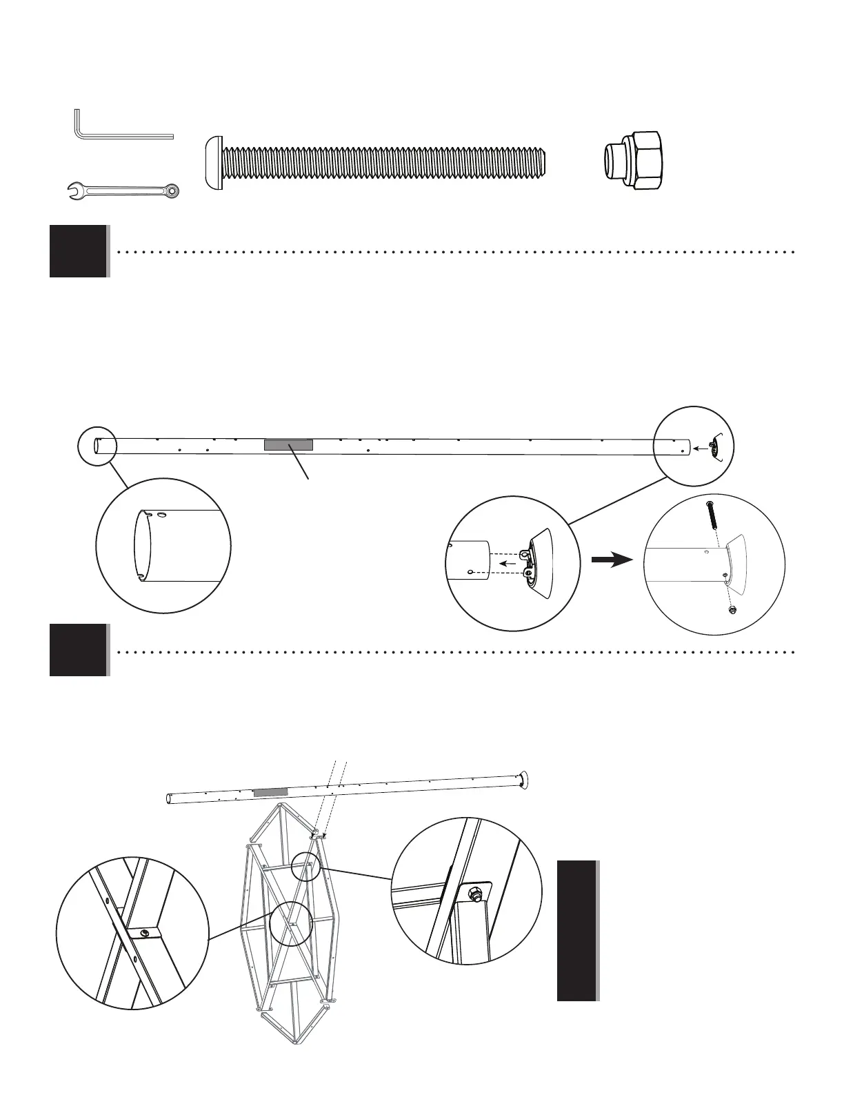 • Secure the Foot Cap (DZO) to the Swing Support Tower Pole (DXB) with the hardware indicated. The Swing Support