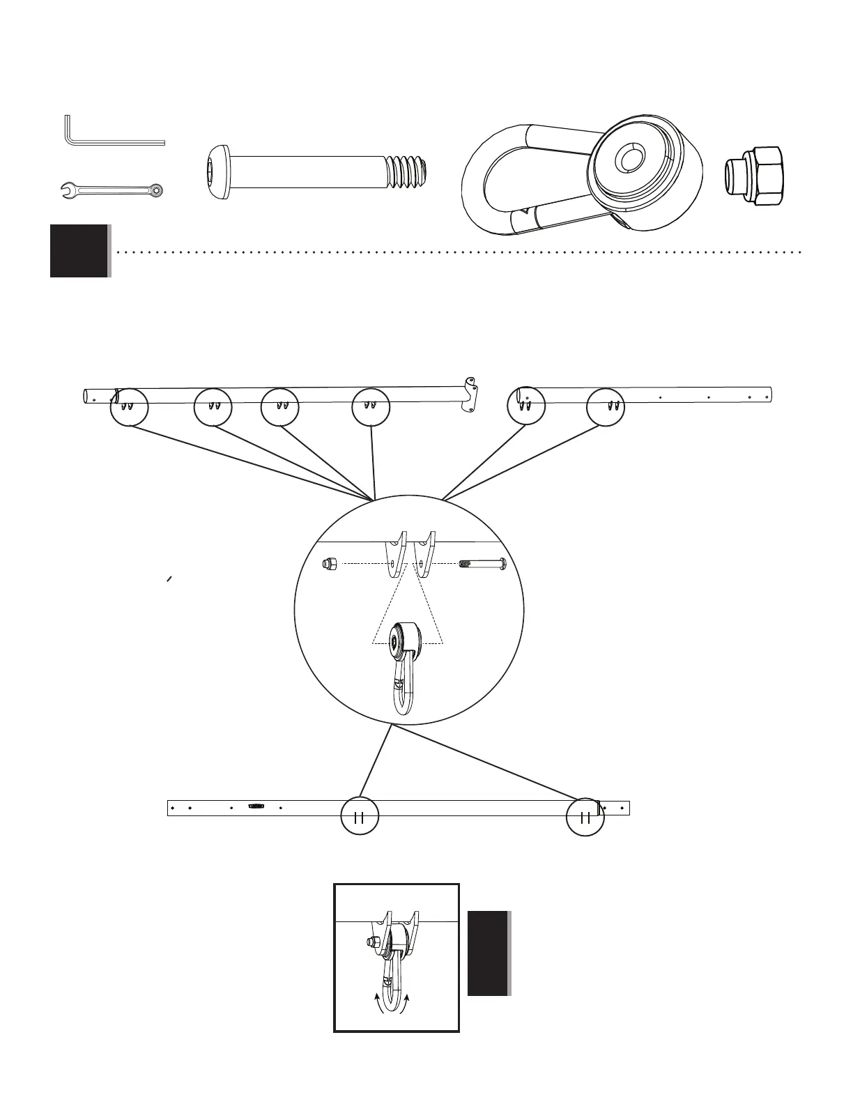 • Secure the Pendulums (DZQ) to the Long Swing Bar (CBO), the Short Swing Bar (EMN), and the Middel Swing Bar (EZV) with