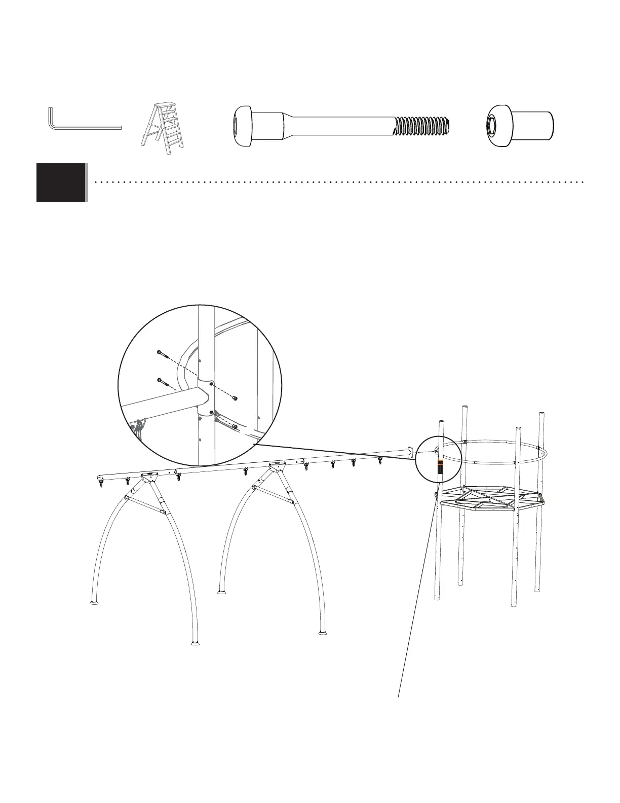 • Have one adult hold the Assembly in place while another adult on a ladder secures the Long Swing Bar (CBO) to the