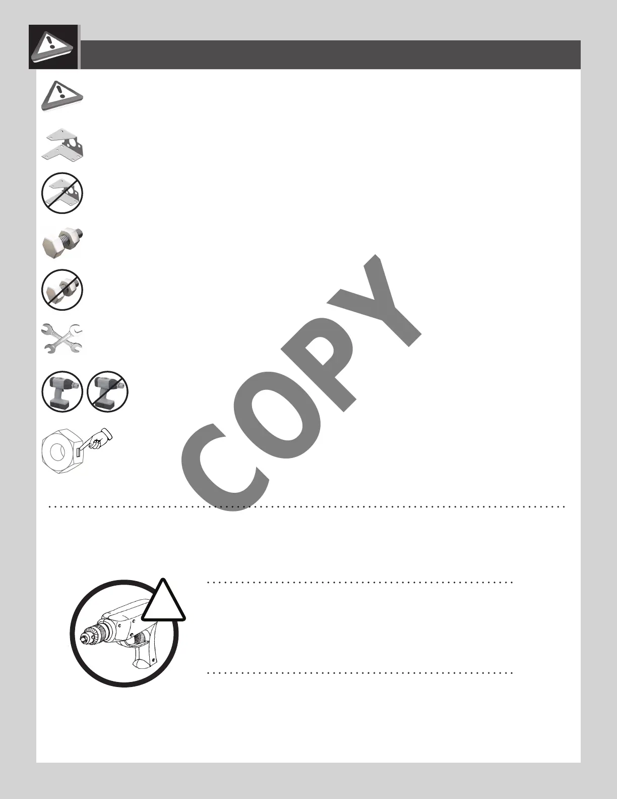 • Ceci indique d’utiliser/de ne pas utiliser pas de perceuse électrique pour une étape particulière.