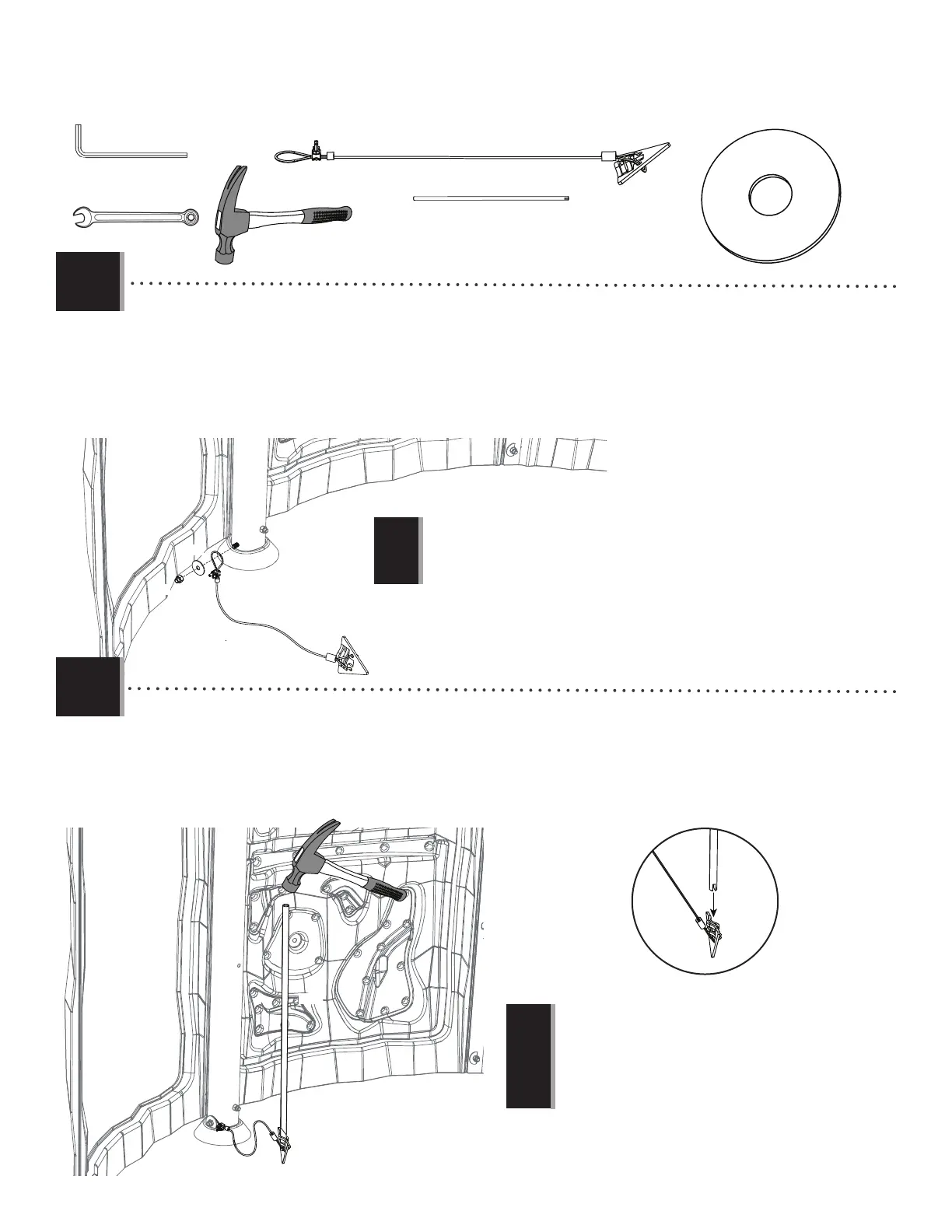 • Insert the Anchoring Rod (EMH) into the Anchor, then use a hammer to drive the Anchor into the ground as close to the Leg as