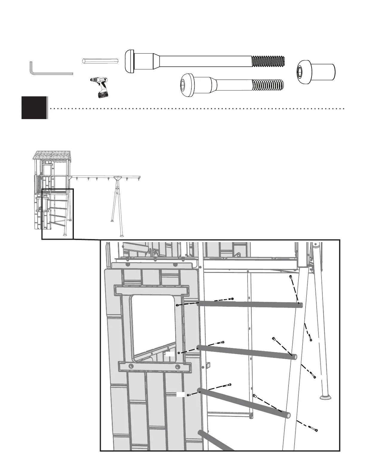 • Secure the remaining three rungs to the Ladder with the hardware indicated.