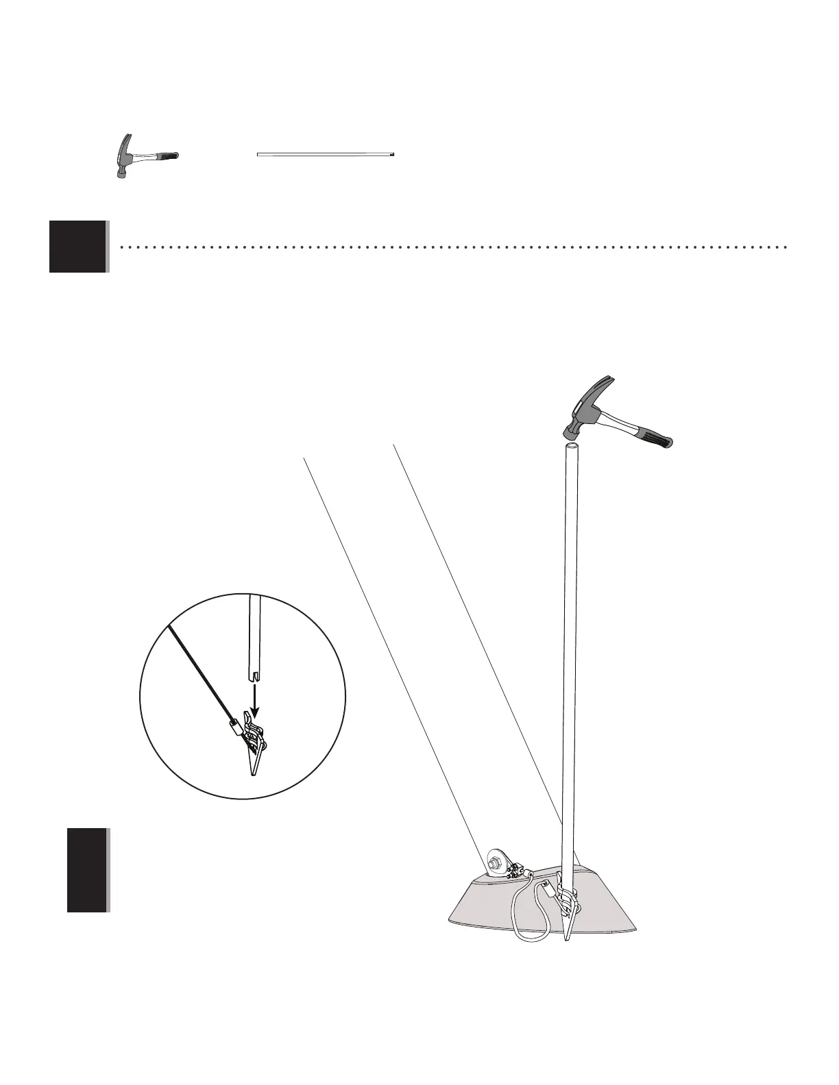 • Insert the Anchoring Rod (EMH) into the Anchor, then use a hammer to drive the Anchor into the ground as close to the Leg as