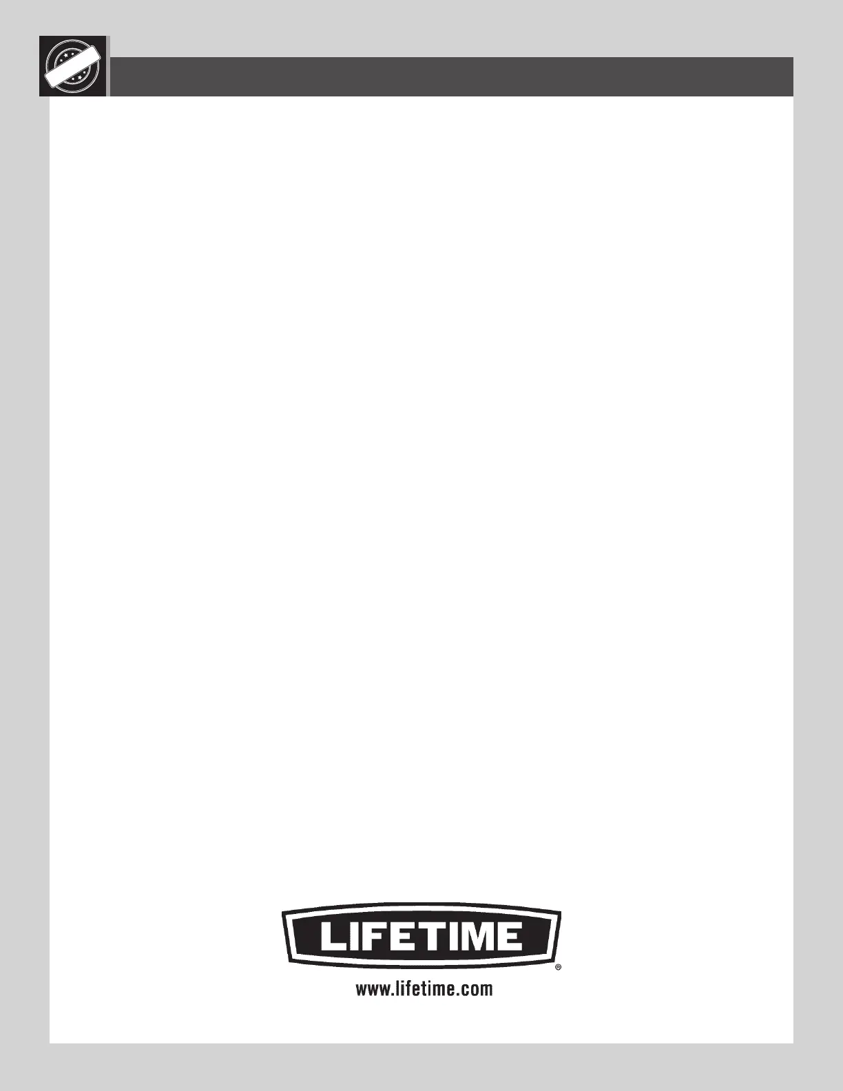 Lifetime Products, Inc., PO Box 160010 Clearfi eld, UT 84016-0010 or call (800) 225-3865 M–F 7 a.m. to 5 p.m. MST.