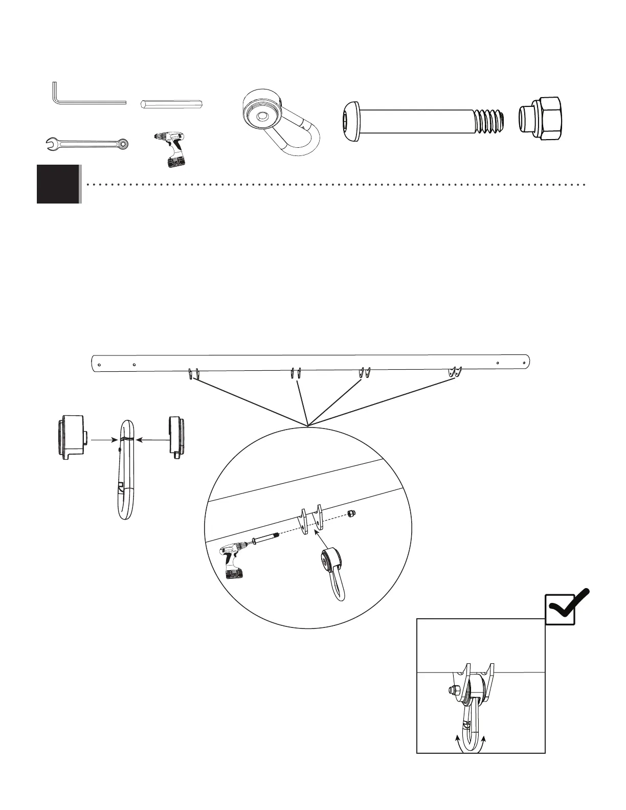 quincaillerie fournie. Faites ceci pour chaque ensemble de supports sur la barre de balançoires. On peut utiliser un