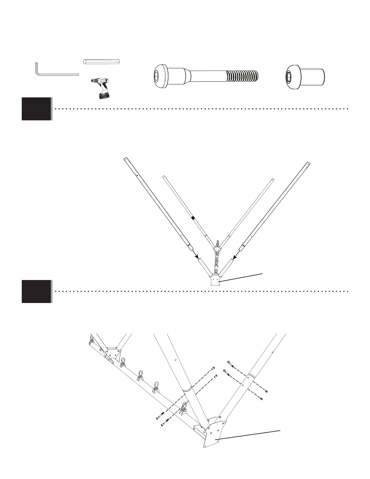 • Secure the legs together with the hardware indicated.