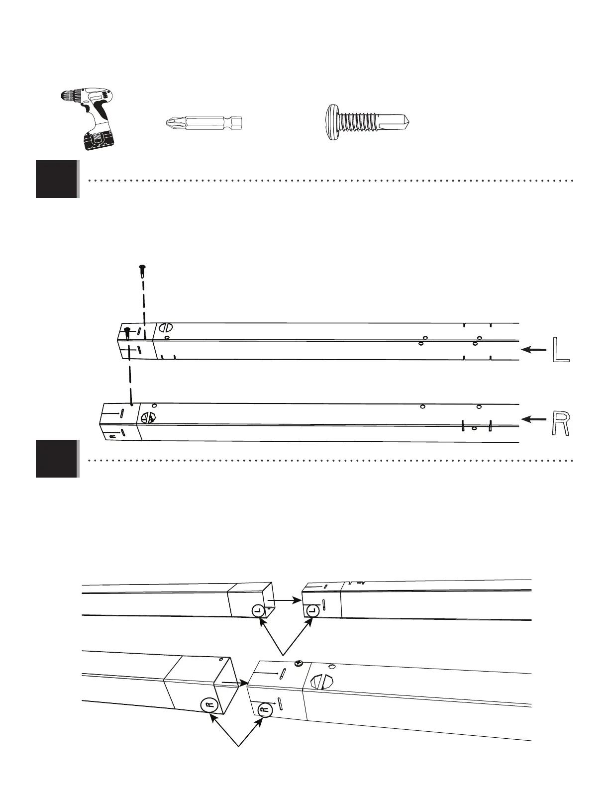 les lettres L et R gravées dans les poteaux. Insérez les poteaux rétreints dans les poteaux évasés aussi loin que