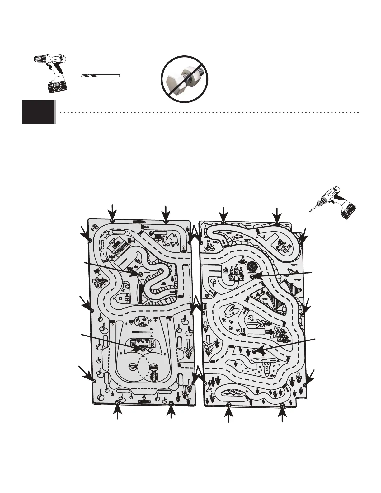 • Using a 3/8" (≈10 mm) Drill Bit, drill the Decks (FCL and FCR) at the twenty four locations indicated. Ensure you