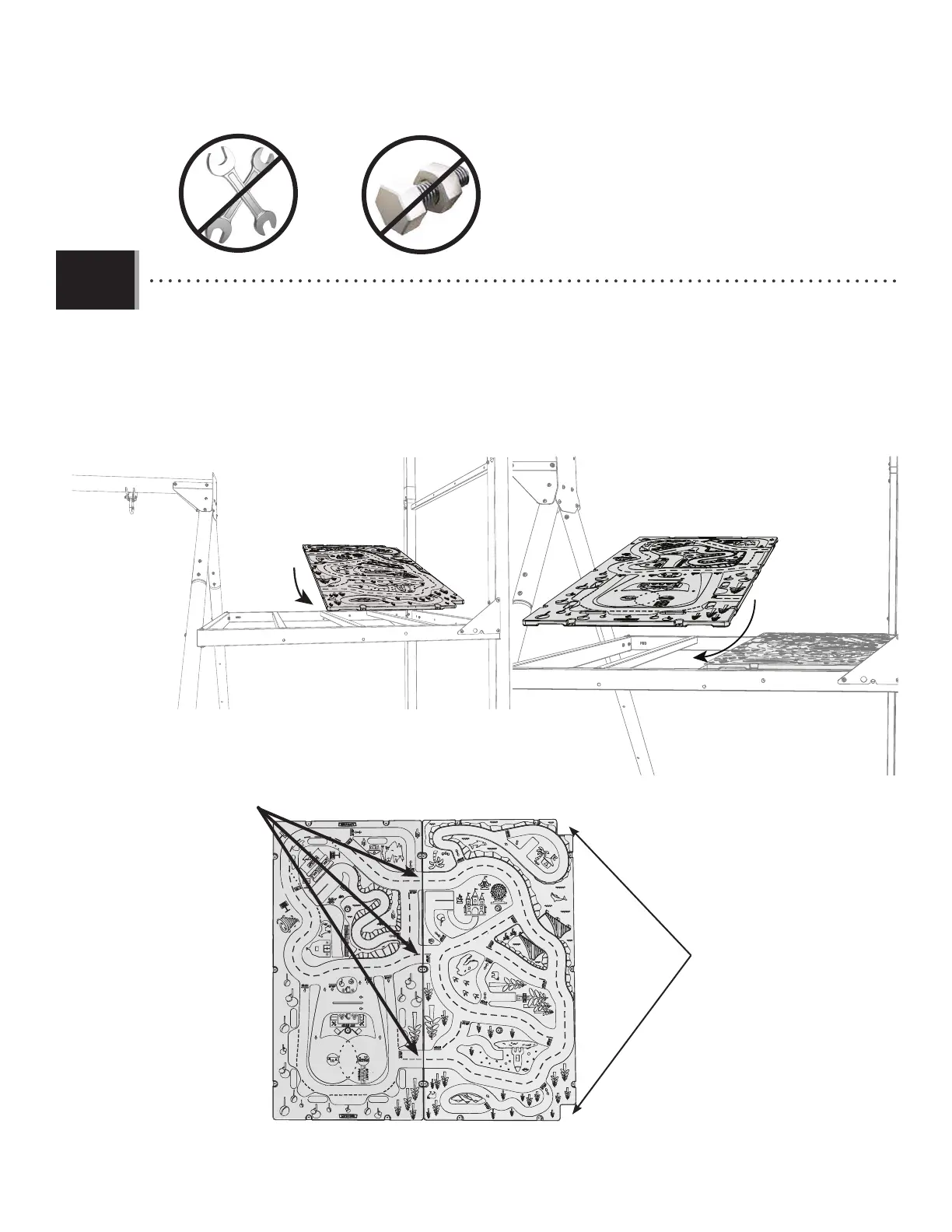 • Place the fi rst Large Deck Panel (FCR) on the Deck. Line up the corner indents with the Large Deck Support framework.