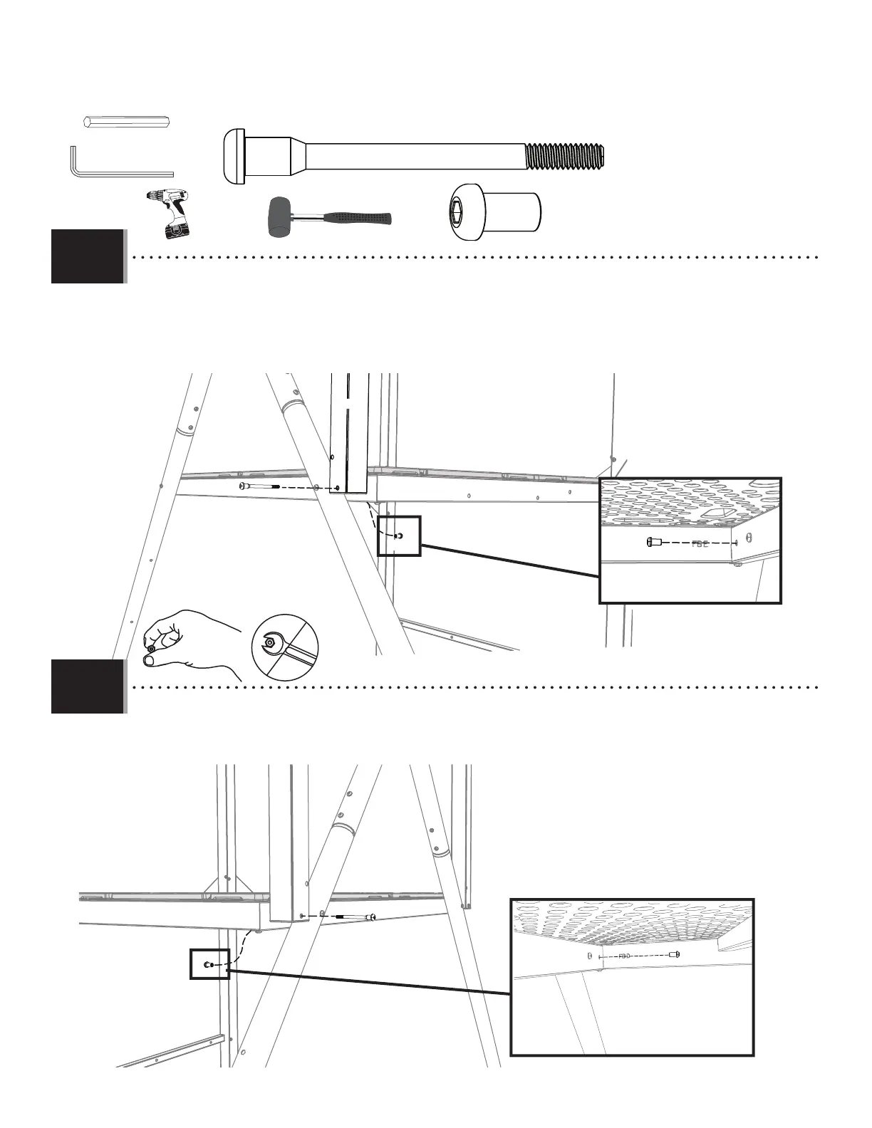 • Attach the second Main Deck Pole (FUO) to the Main Deck with the hardware indicated.