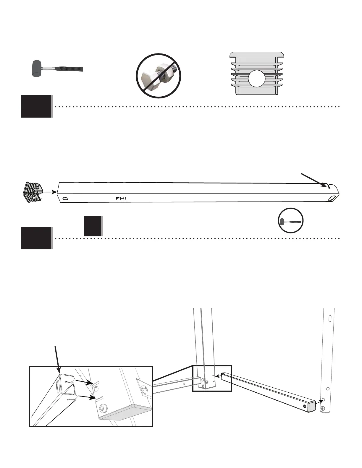 • Insert a Plug (FCW) into the end of the Panel Support Pole (FHI). Place it in the end without locking tab.