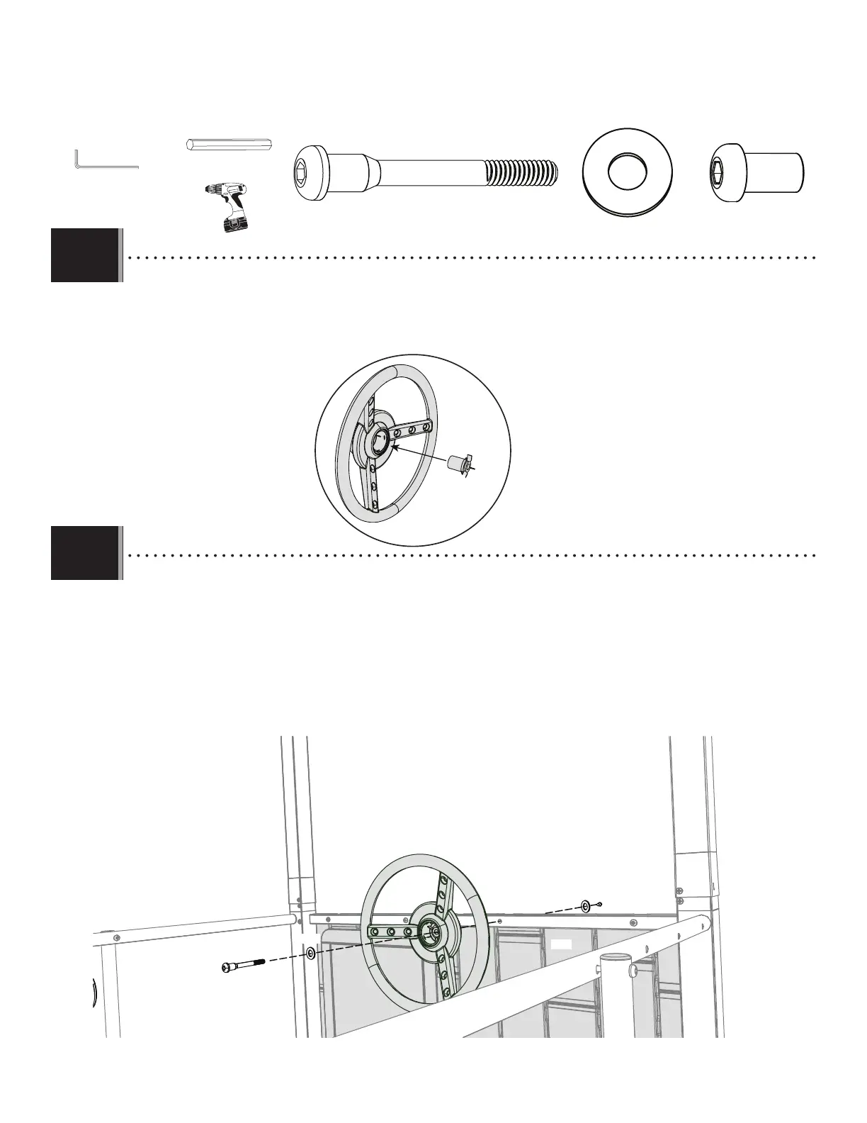 • Secure Steering Wheel (CCE) to the Deck using the hardware indicated. This hardware will also be