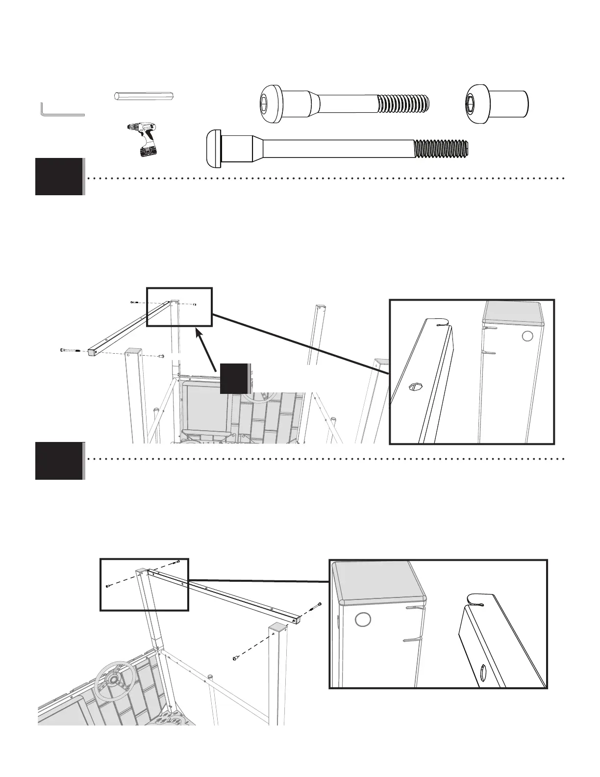 the opposite end against the opposite square Support Tube and secure with the hardware indicated.
