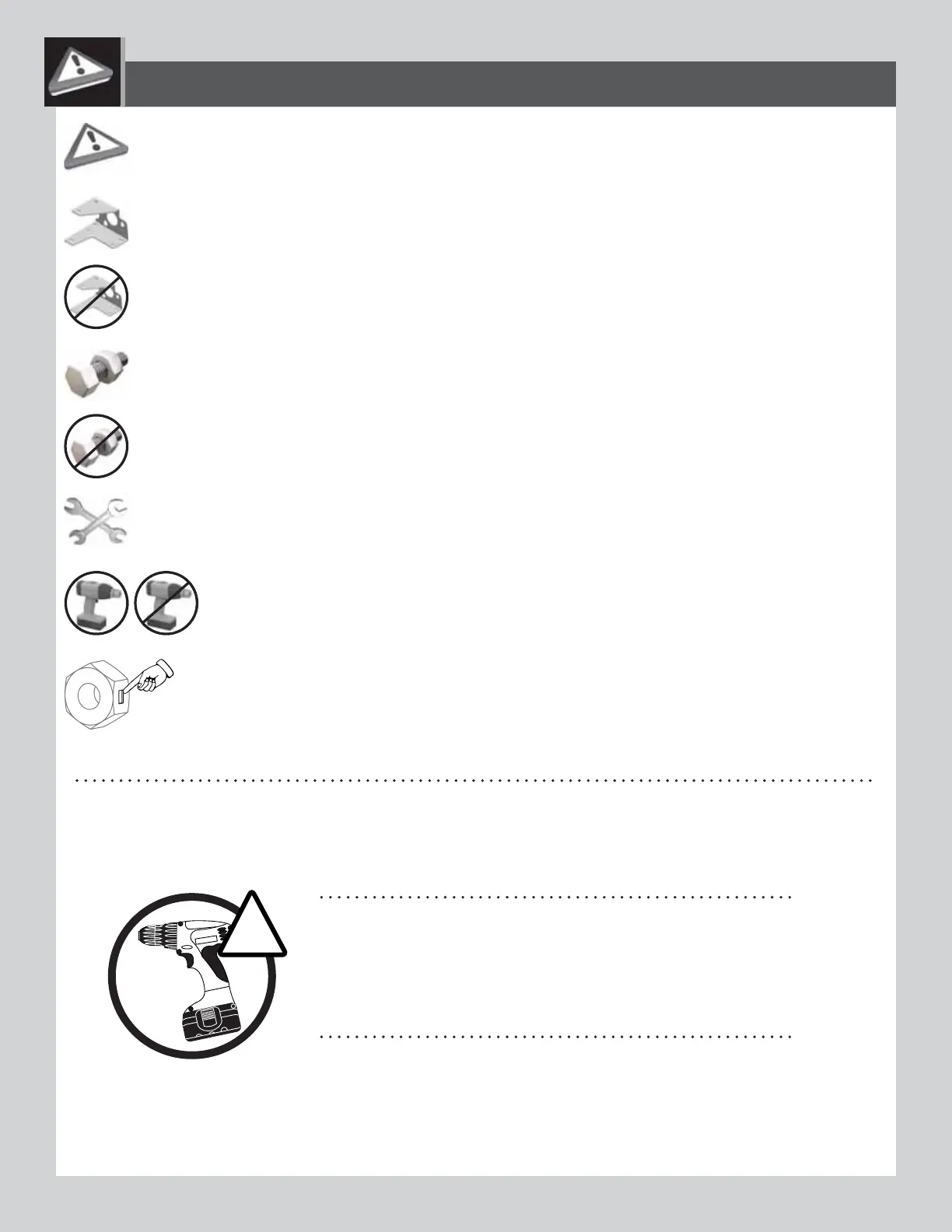 • Ceci indique d’utiliser/de ne pas utiliser pas de perceuse électrique pour une étape particulière.