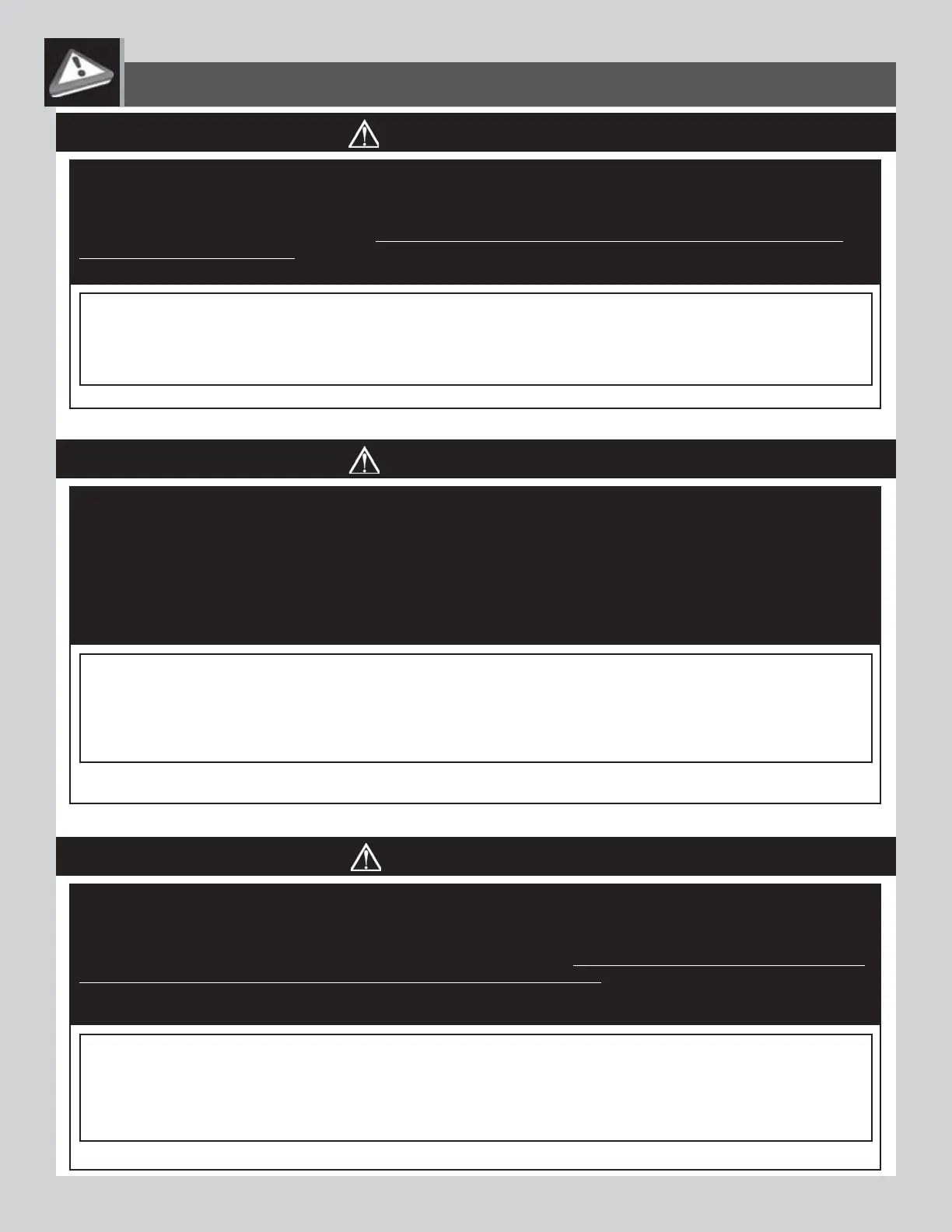 FAILURE TO FOLLOW THESE WARNINGS MAY RESULT IN SERIOUS INJURY OR PROPERTY DAMAGE AND WILL VOID WARRANTY.